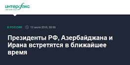 Президенты РФ, Азербайджана и Ирана встретятся в ближайшее время Москва. 12 июля. INTERFAX.RU - Встреча президентов РФ, Ирана и Азербайджана состоится в скором времени, заявил глава МИД РФ Сергей ...